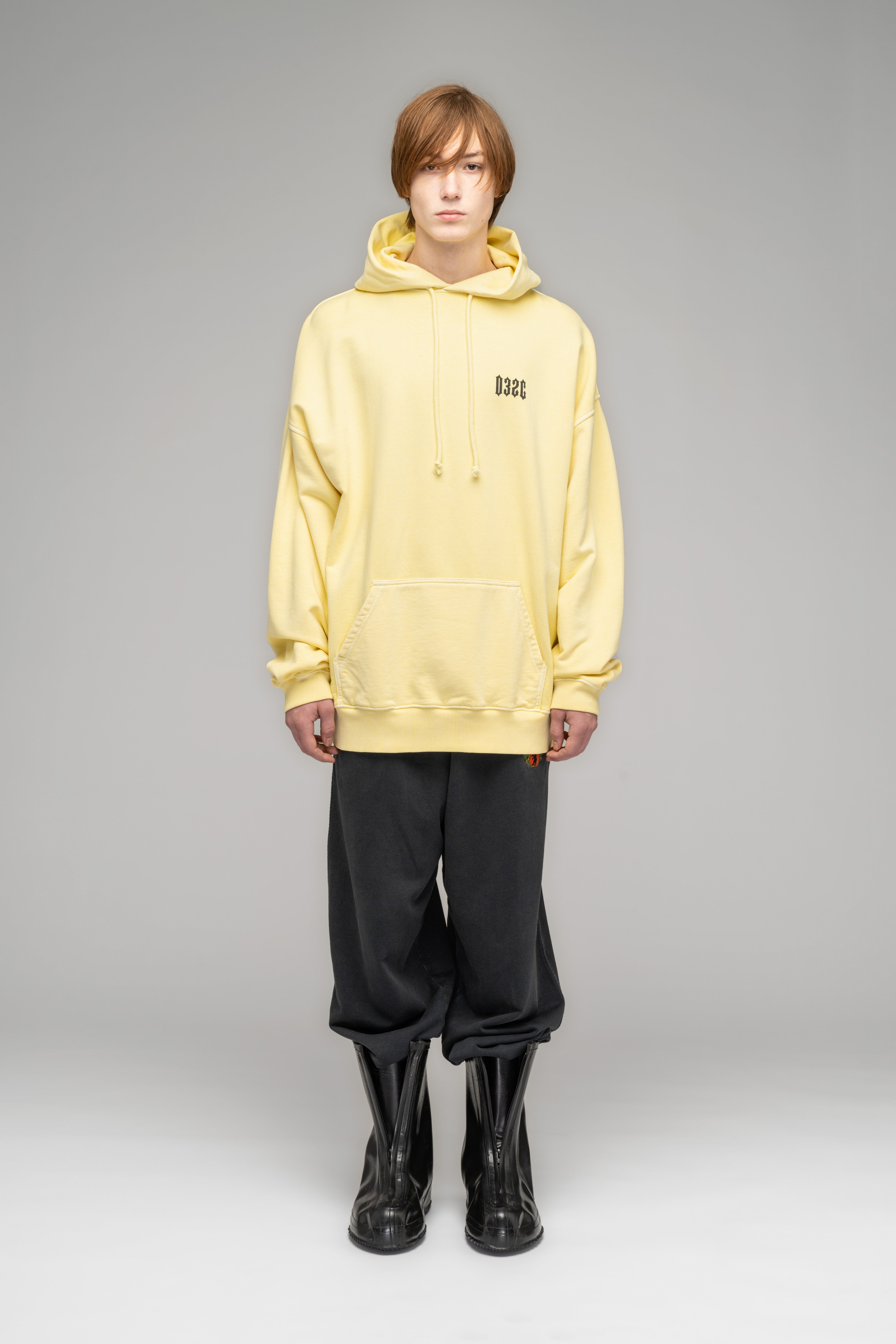 Our new loose fit hoodie with a bubble shape and a faded garment treatment. Screenprints on front and back with a used feel.