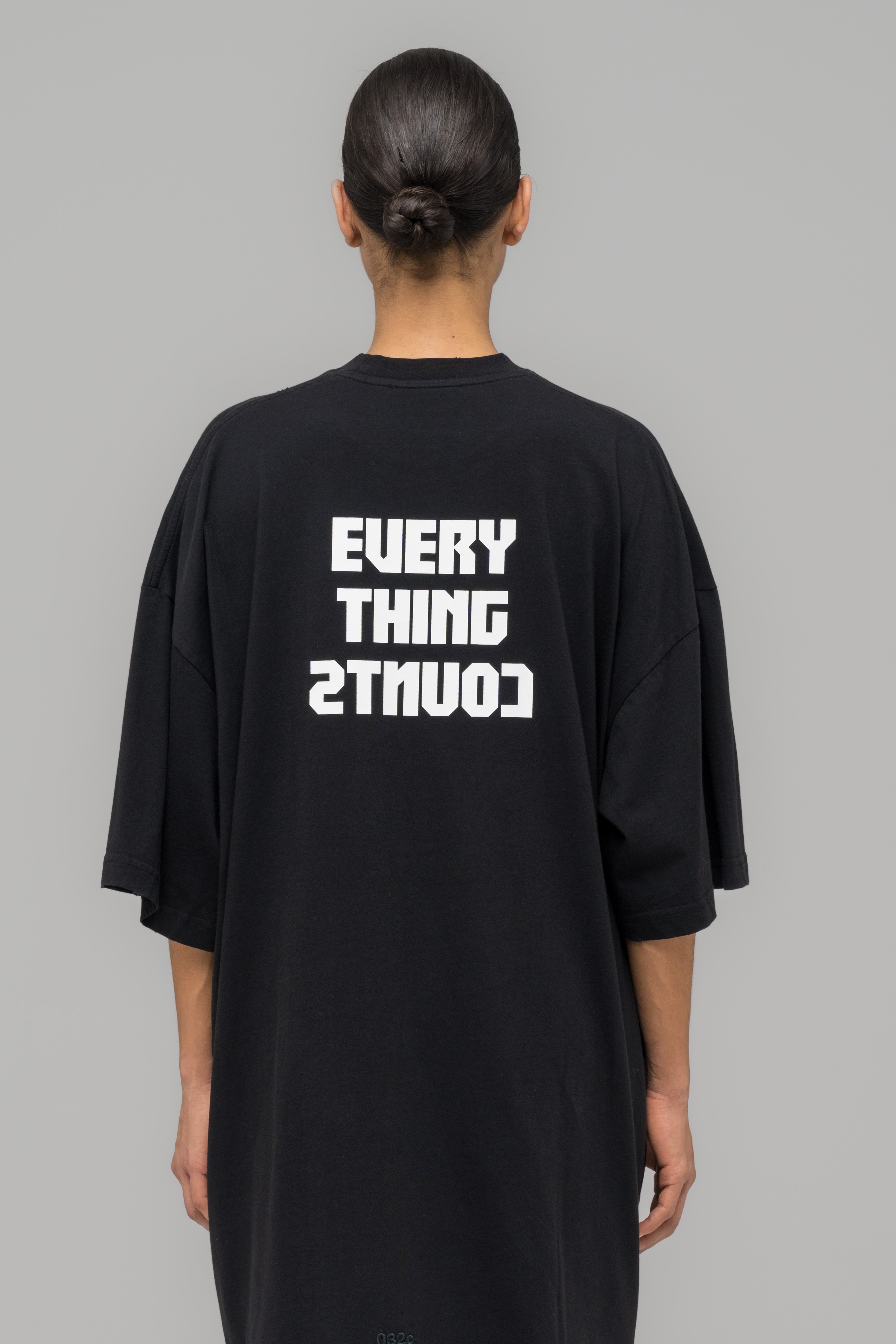 An oversized t-shirt equipped with distinct 032c artwork strategically placed on the front and back. Comes in a faded black and distressing, for a vintage feel.