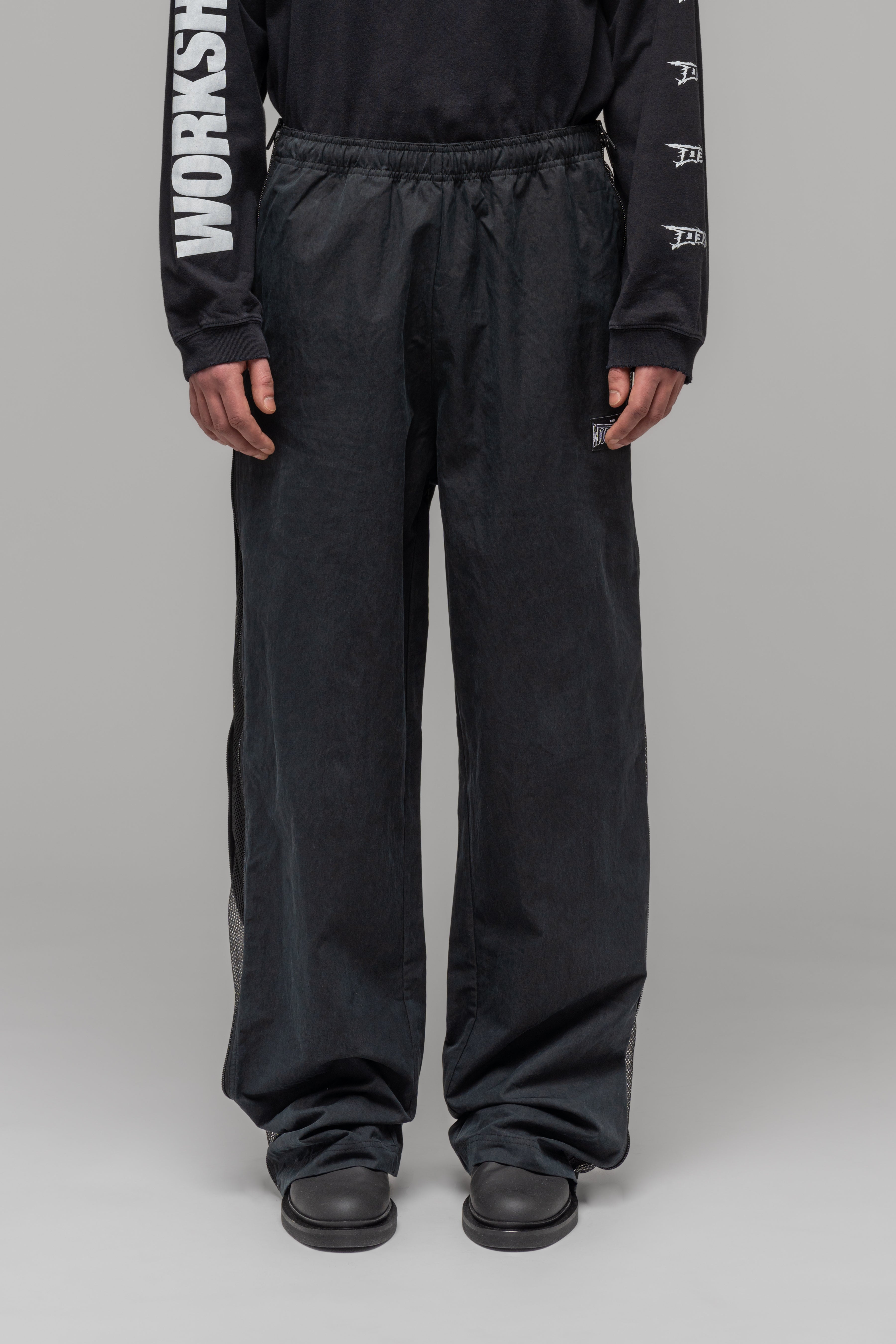 Our side-zip multi purpose tracksuit pants, featuring a gathered waistband, side pockets, and back welt pocket. The straight leg silhouette has side mesh inserts, which can be fully exposed for extra ventilation and a wider leg fit. Waist drawstrings at the inside.