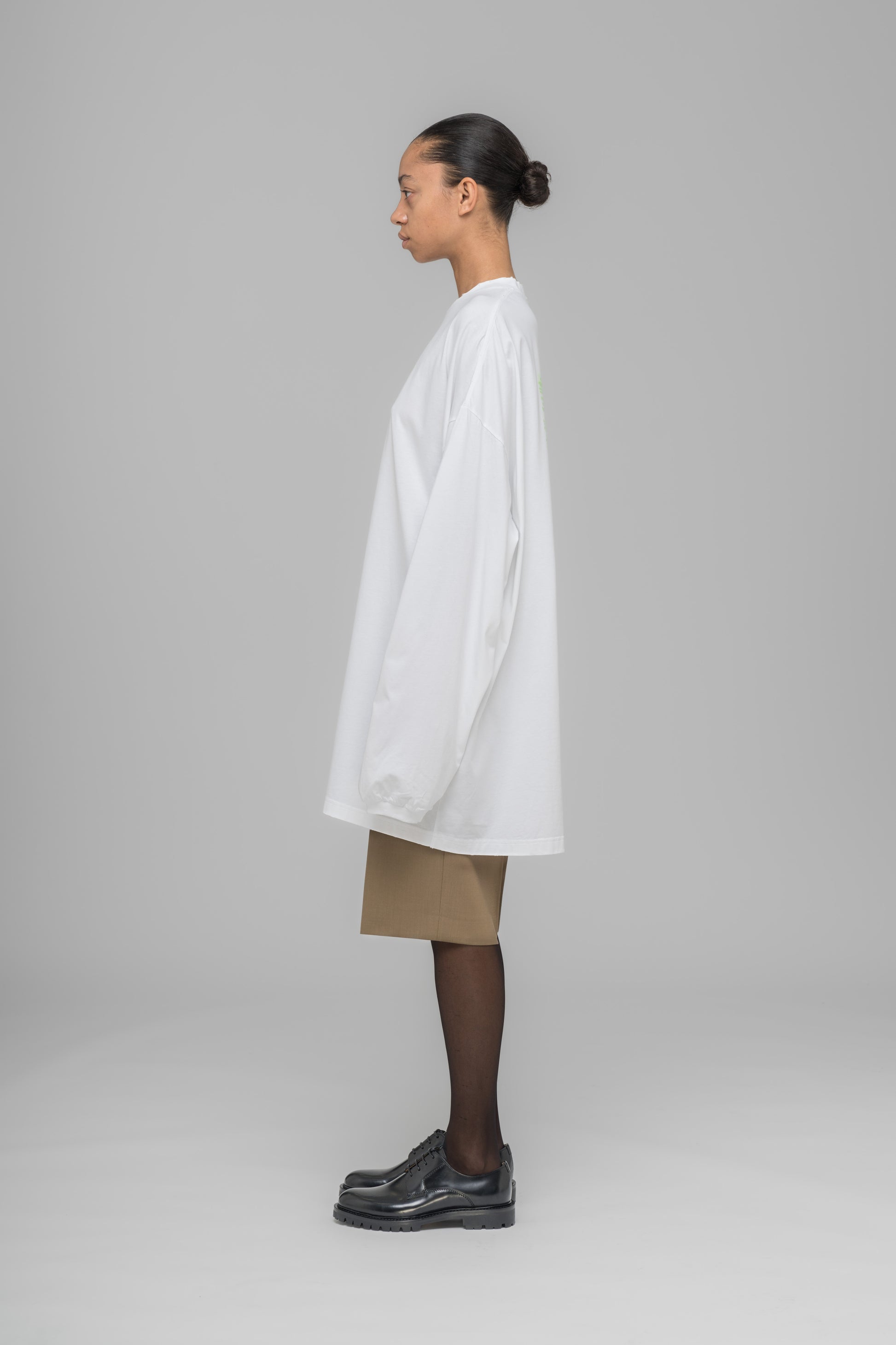Our oversized longsleeve in white showcases distinct digital print 032c artwork. Distressed slightly for an overall vintage feel.
