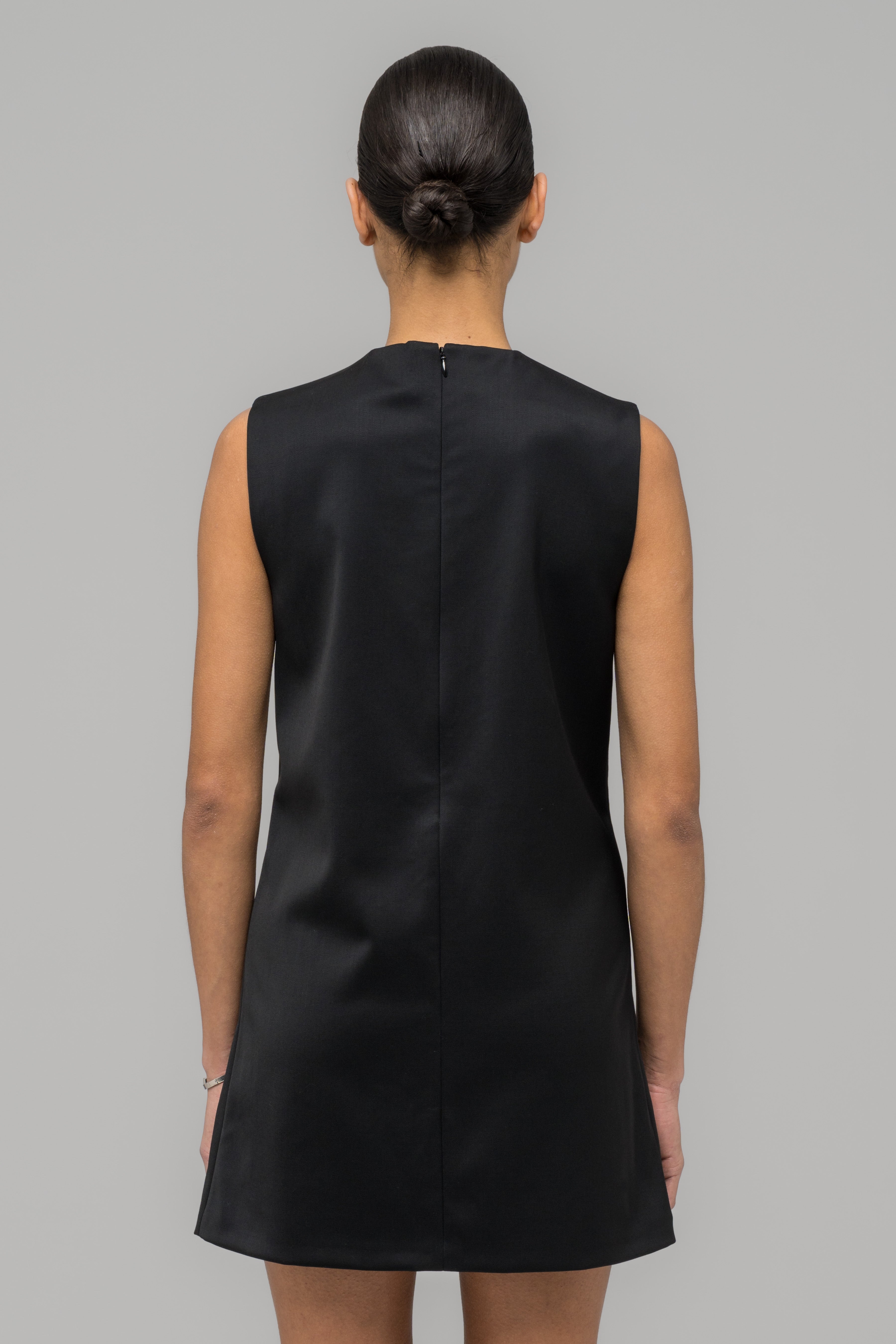 An A line mini dress creates the classic shift dress silhouette. Constructed with darts at the bust and a hook & eye invisible zip closure.