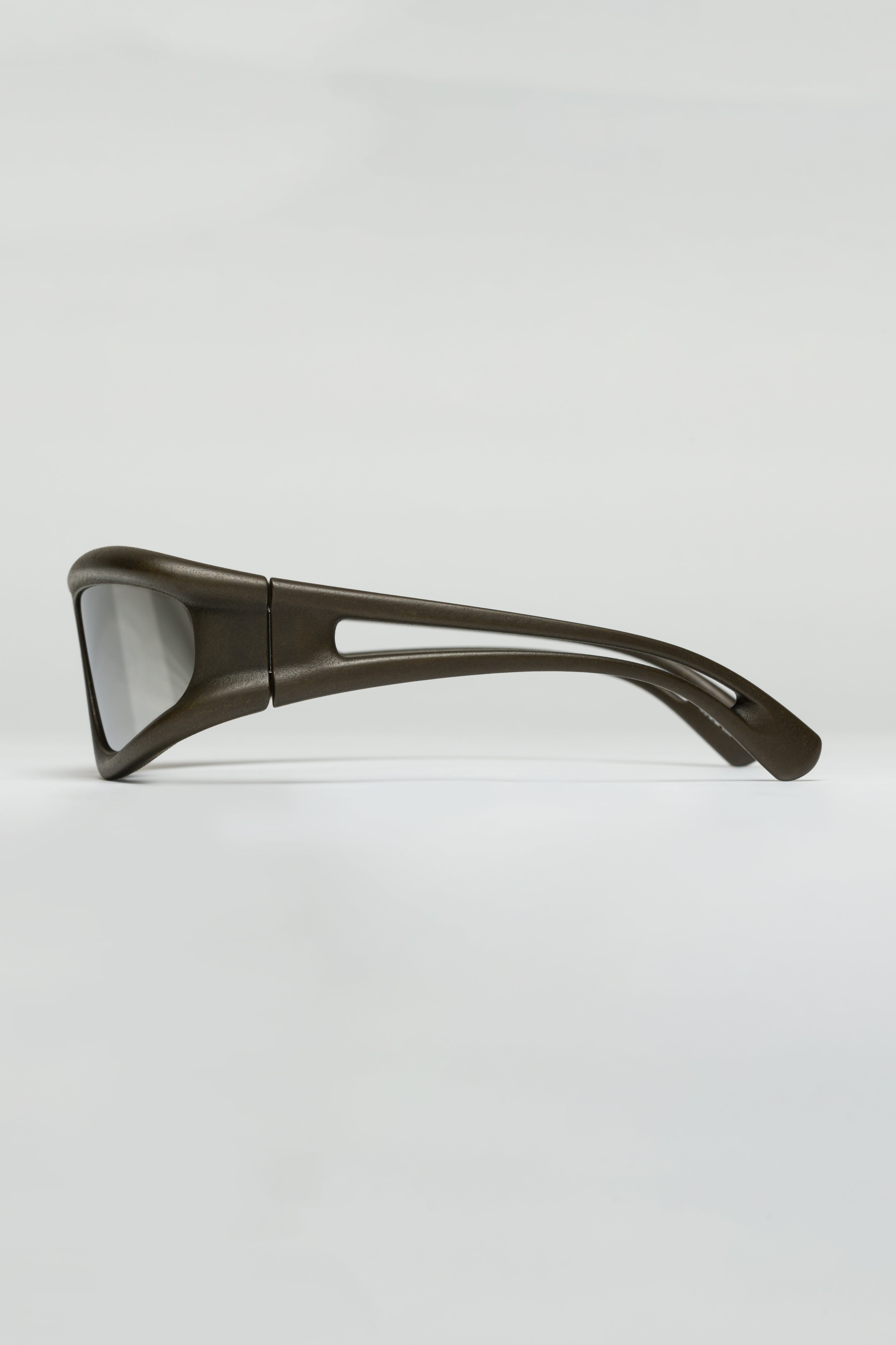 Material: Mylon Frame: MD31 Safari Green Lens: Silver Shield Hydrophobic nano coating Patented hinge system Individually adjustable Tinted polyamide sun visor with 100% protection against UVA/UVB rays and an anti-reflective inner coating Lightweight Comes with branded eyewear case and cleaning cloth Handmade in Berlin