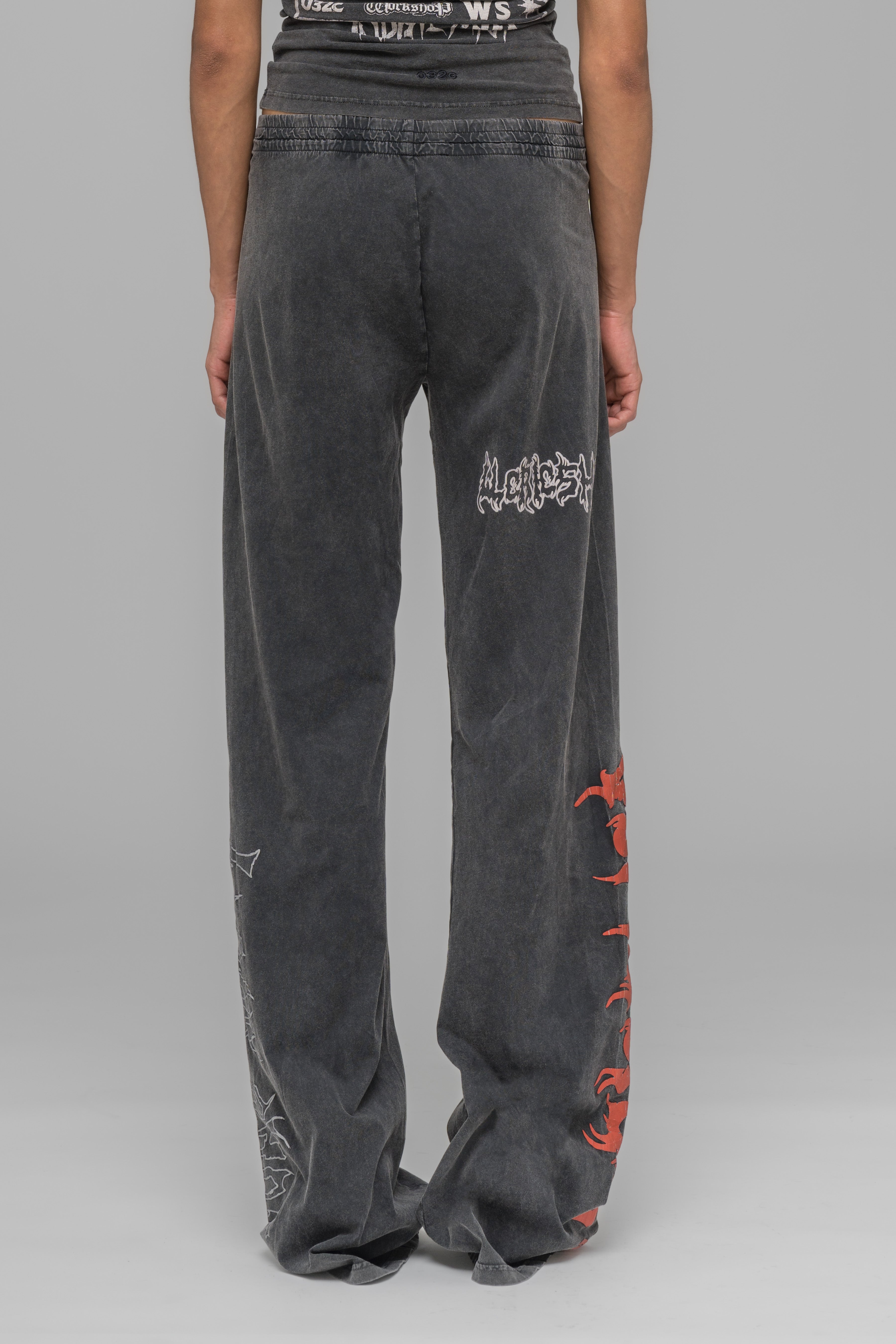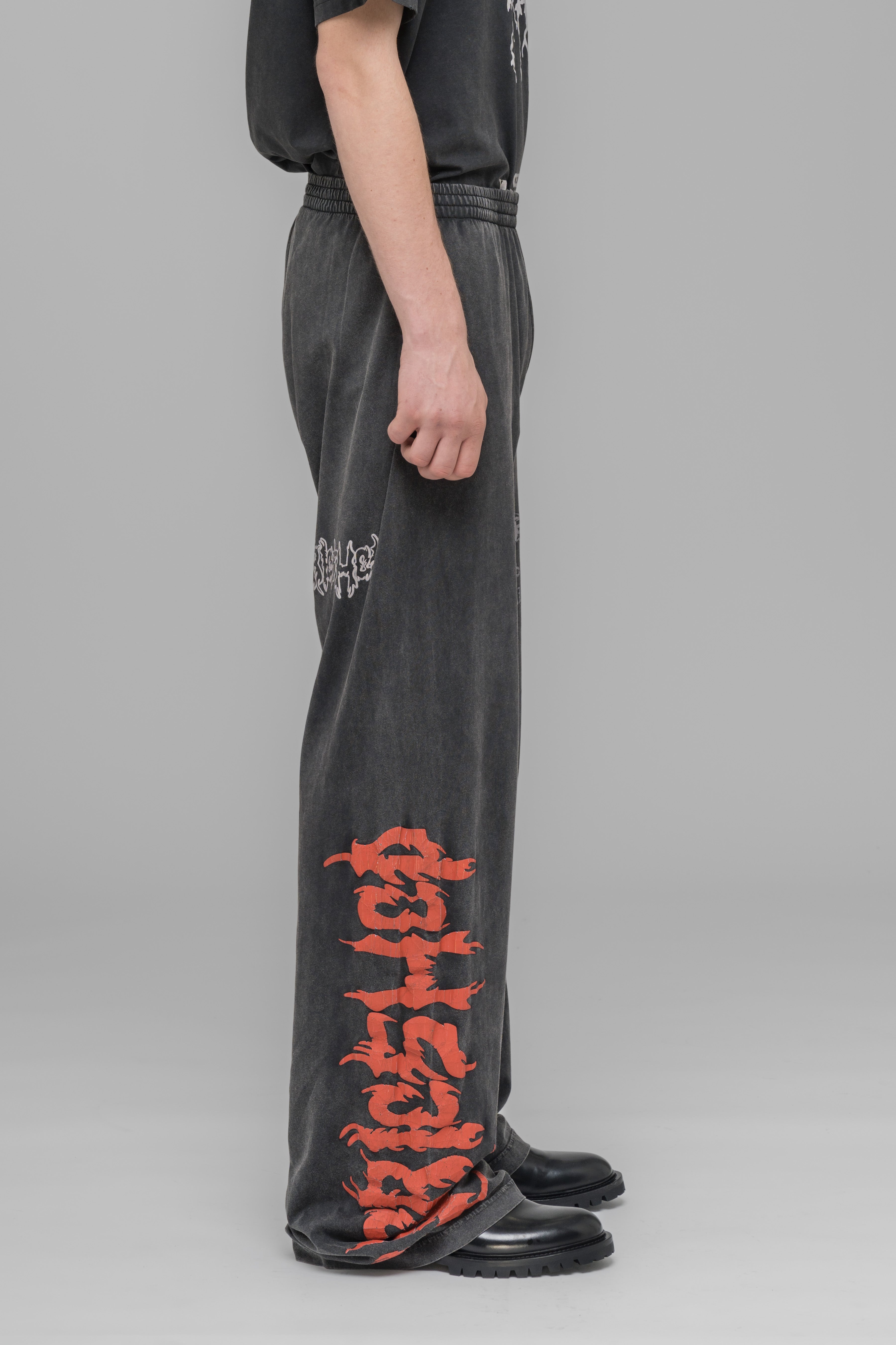 Faded black comfort pants in a relaxed yet elevated style. Featuring 032c embroidery and a cracked screen print of seasonal artworks.