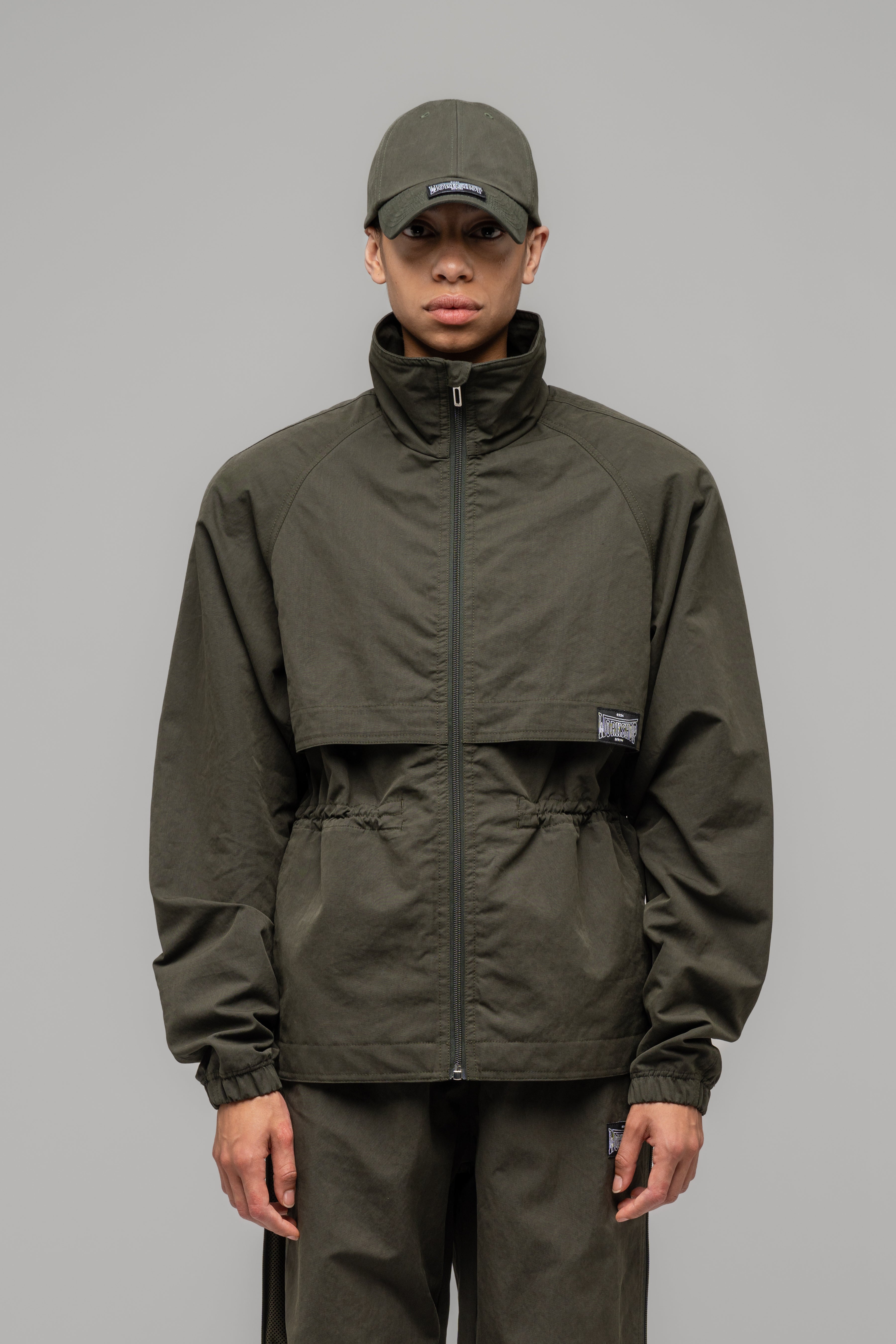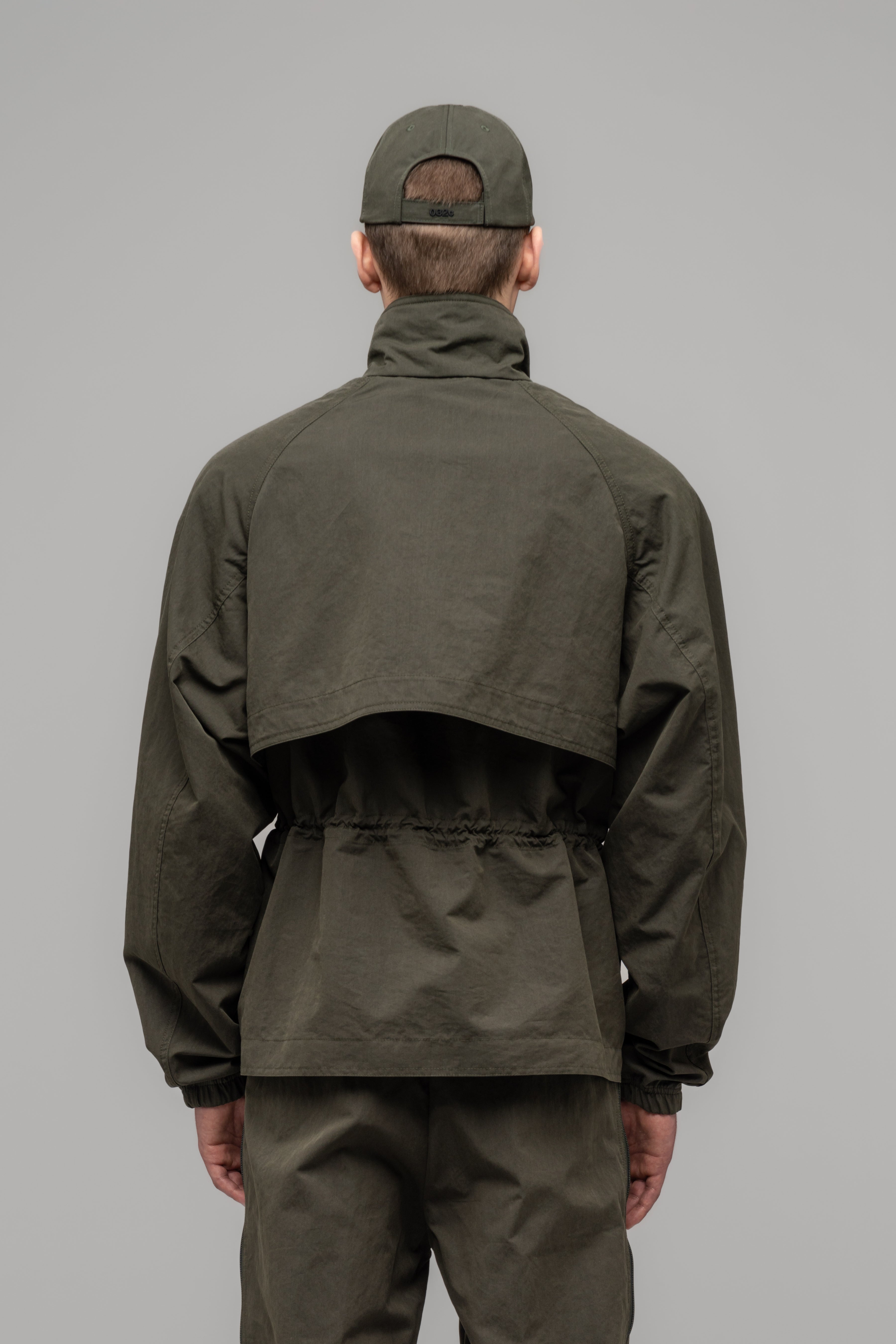 Raglan sleeve, zip front tech tracksuit jacket with an accentuated shoulder. Storm flaps at front and back for extra functionality during stormy and windy autumn days. Half lined with mesh for extra ventilation and a lightweight feel.