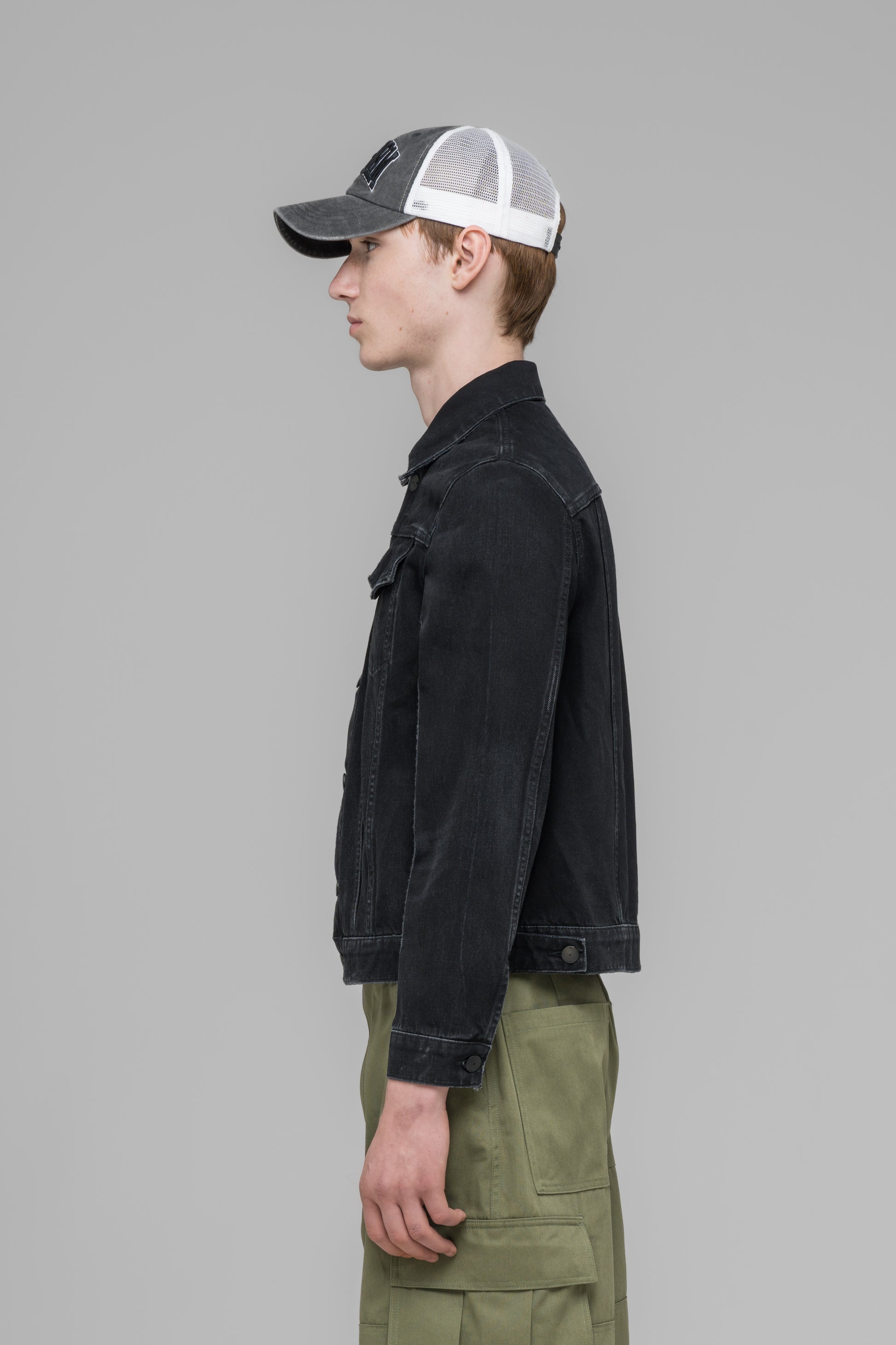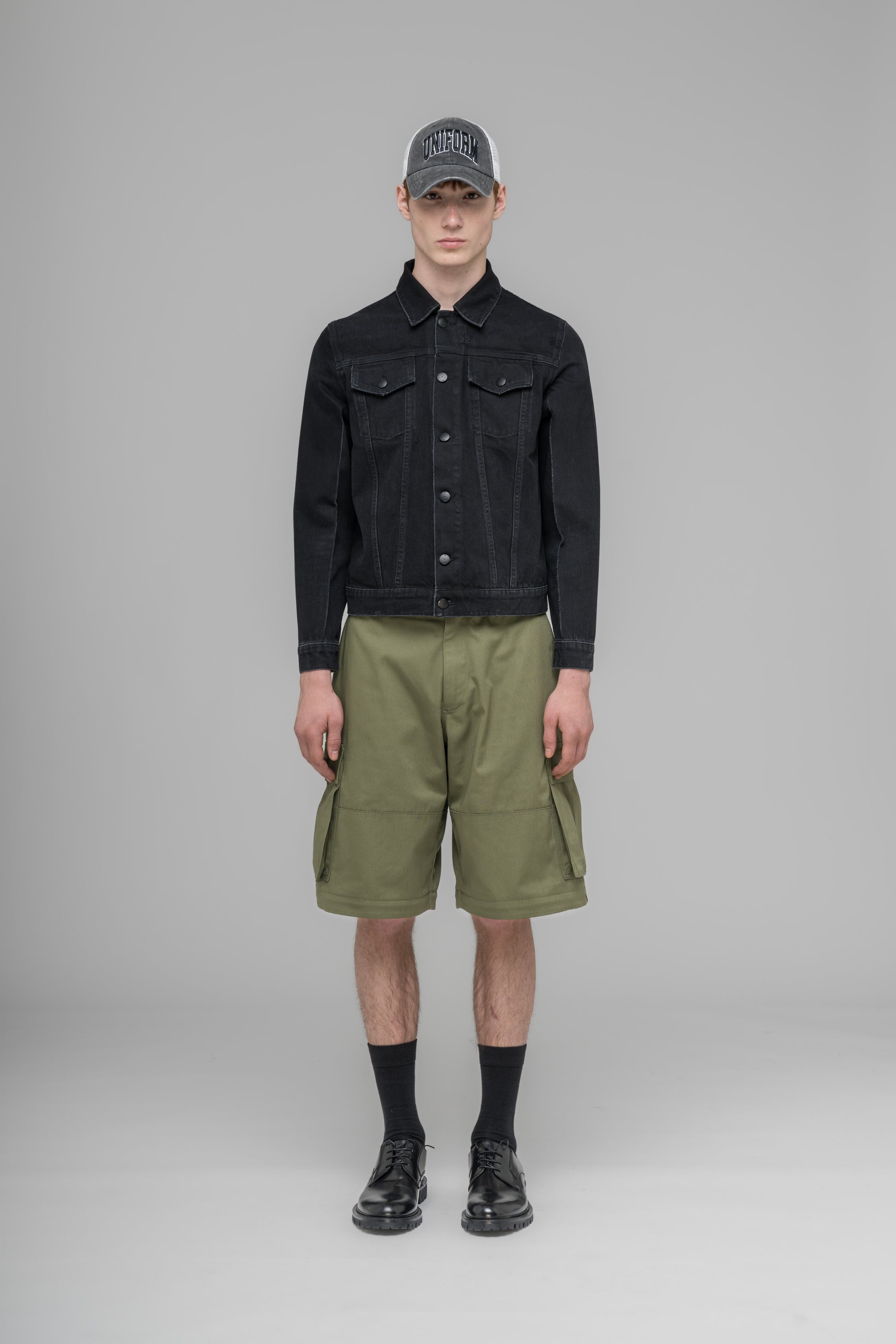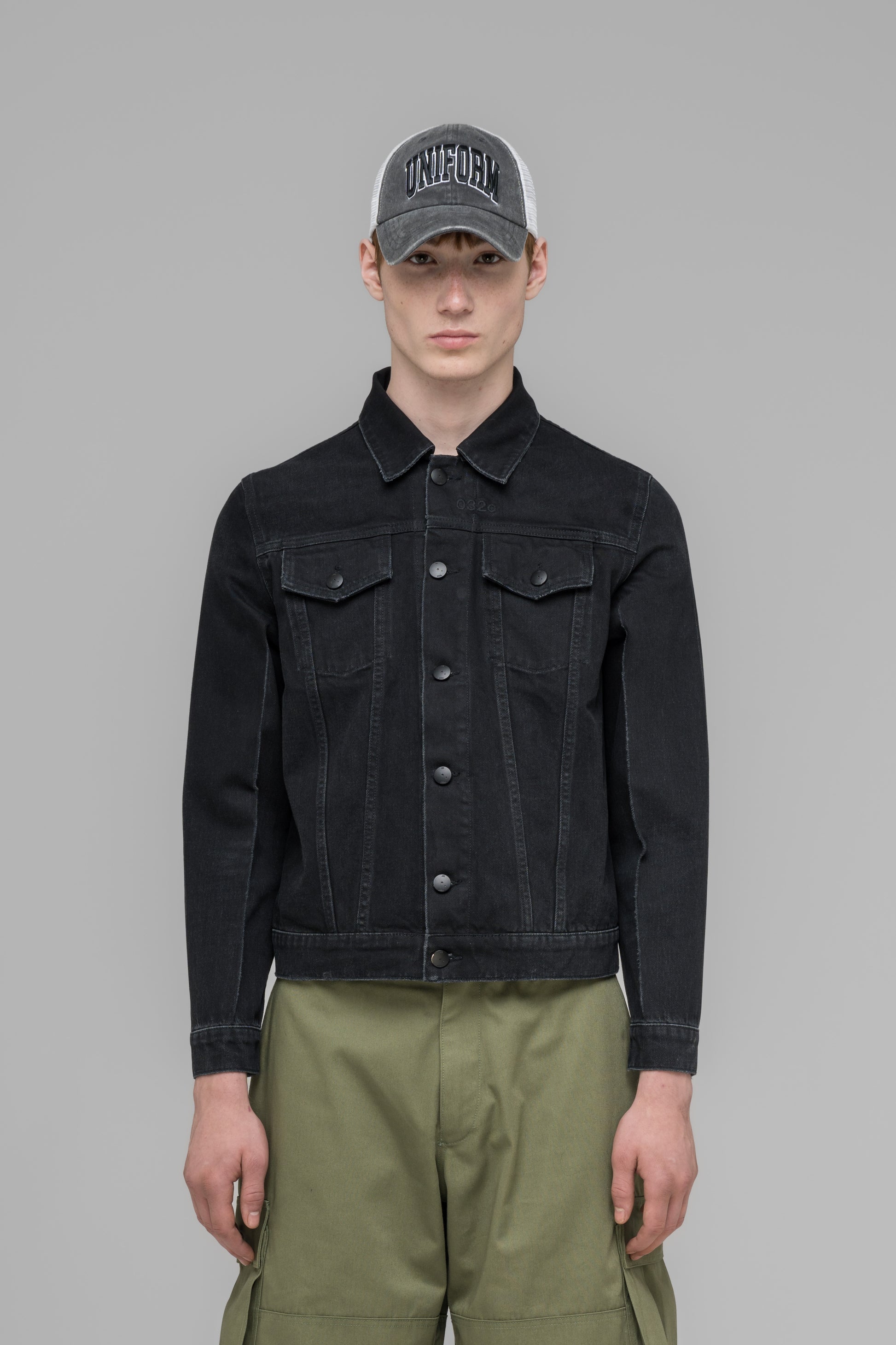A new denim jacket silhouette, constructed with a boxy fit, press creases on the front sleeves, and 032c logo embroidery. Comes in a washed black, paired with a 032c leather patch.