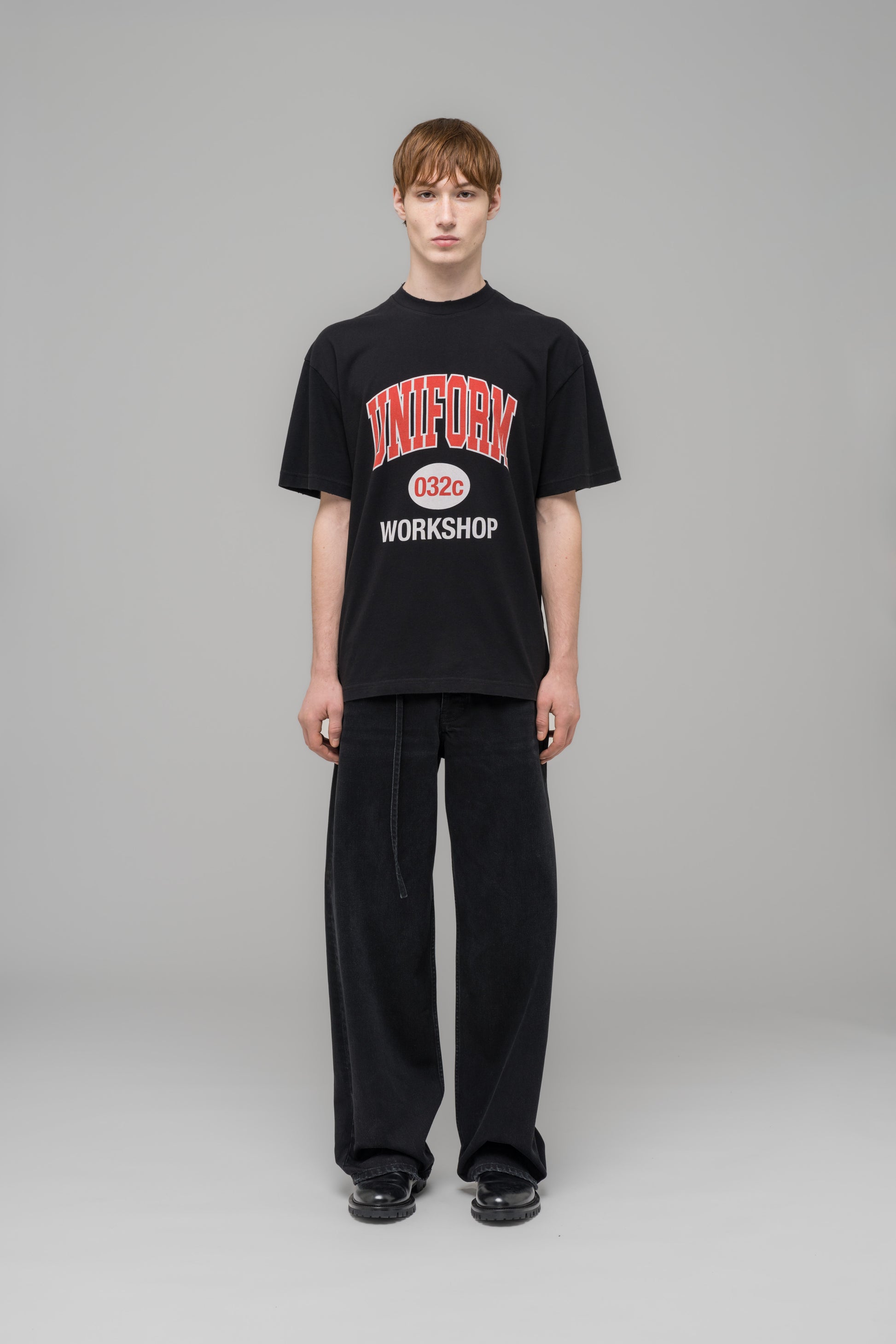 Regular-cut washed black t-shirt with front "LUCKY STRIKE" screenprint and tonal embroidered 032c logo at the back, heavily washed and lightly distressed for a vintage feel.