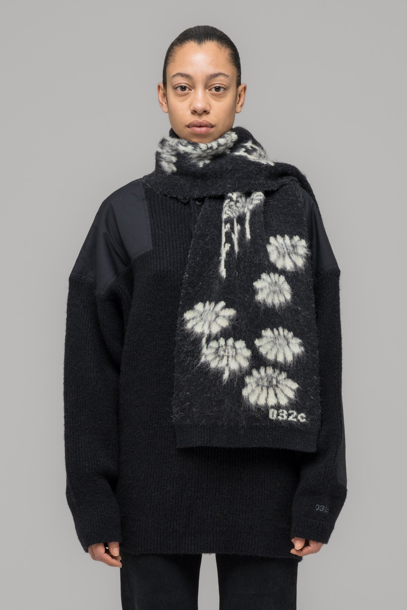Scarf in a soft alpaca-blend with brushed finishing and all-over “Melting Daisies” jacquard artwork.