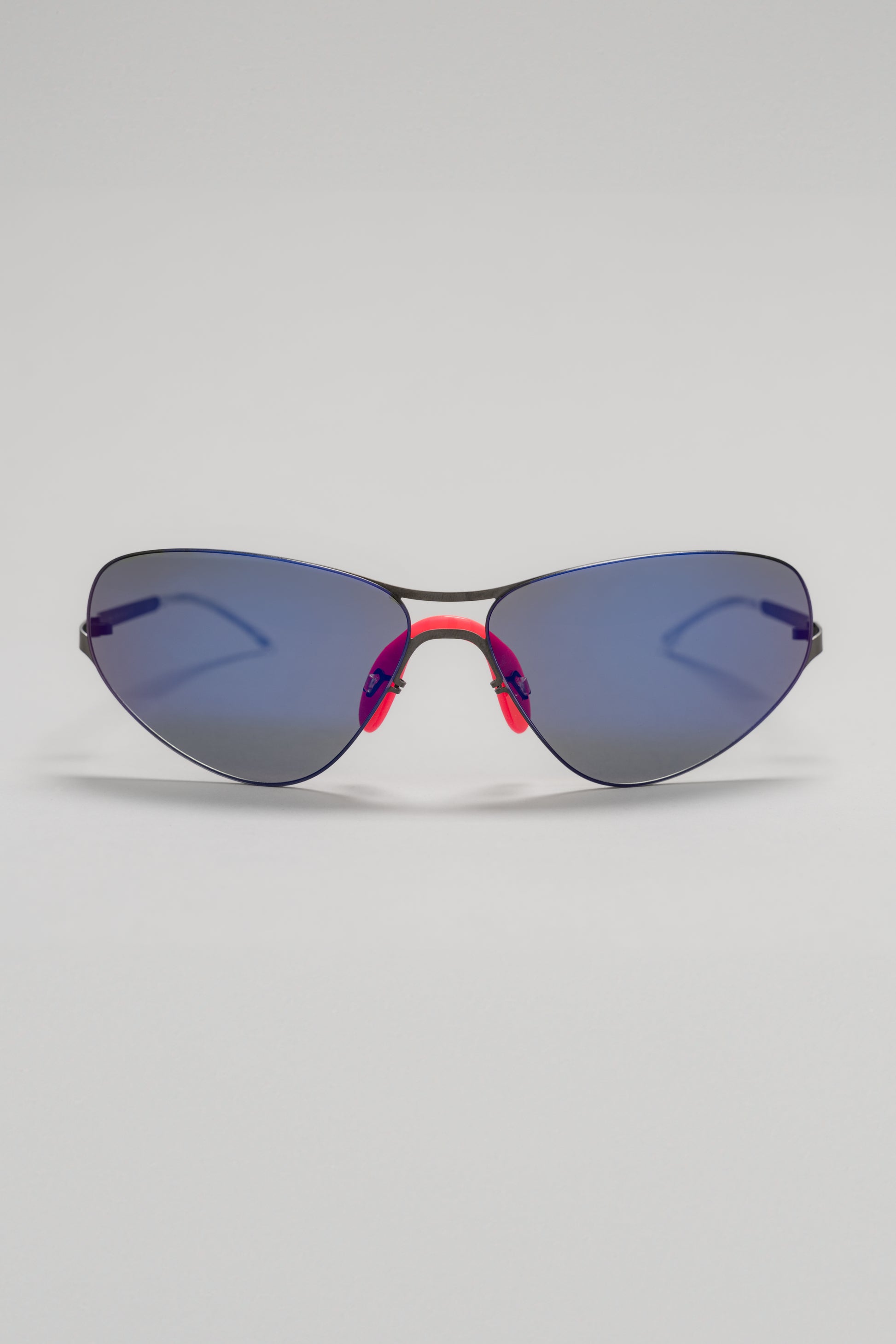 ALPINE is the second edition of MYKITA | 032c: sleek, wraparound sunglasses fashioned from lightweight stainless steel. The MYKITA LESSRIM construction allows the ultra-fine rims to disappear into a groove of the curved lenses. The distinctive temple design follows the bottom contour of the frame, creating flowing lines complemented by specially curved side pieces and achieving a high speed, aerodynamic look.