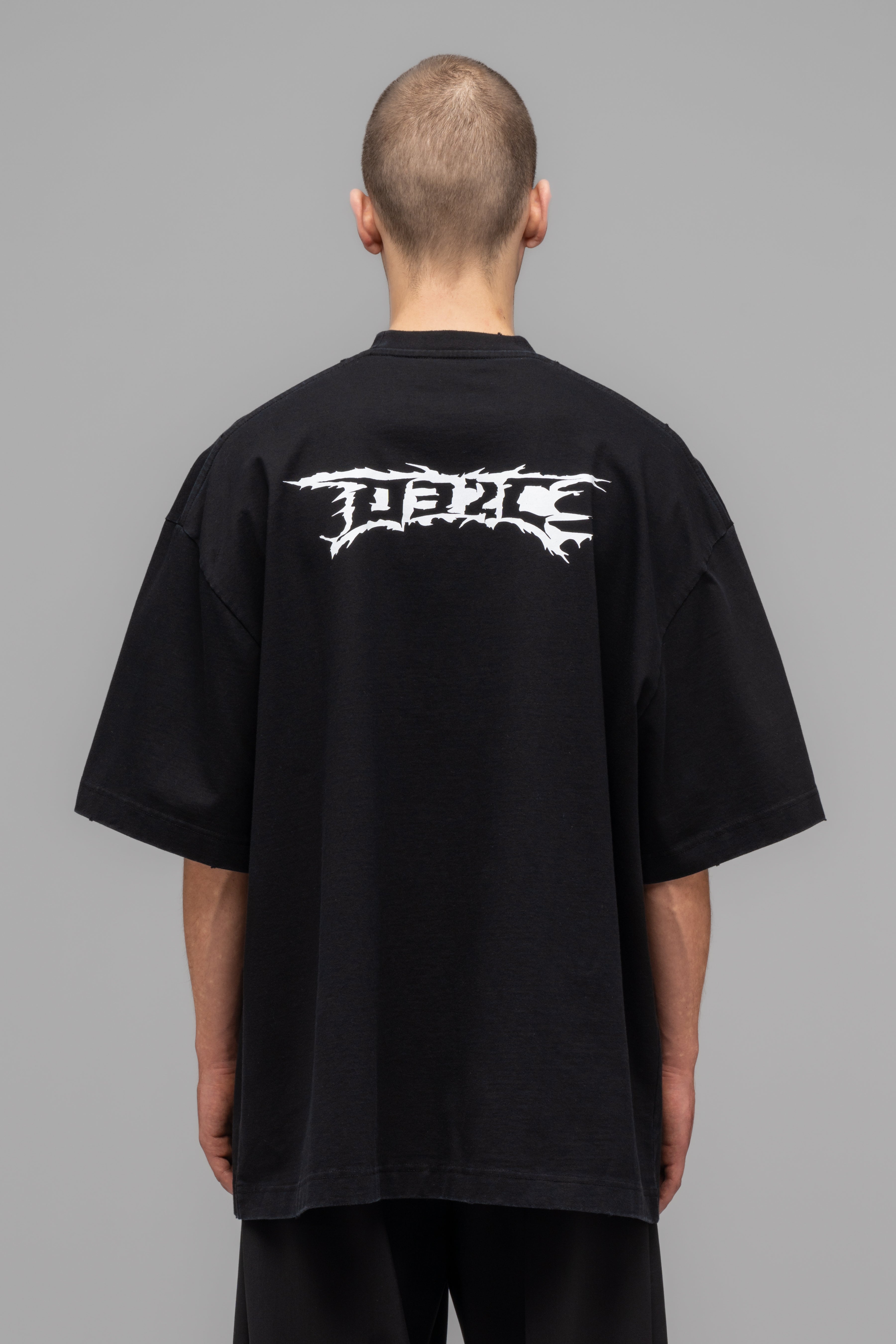 This distressed oversized t-shirt comes in washed black for an overall vintage feel.