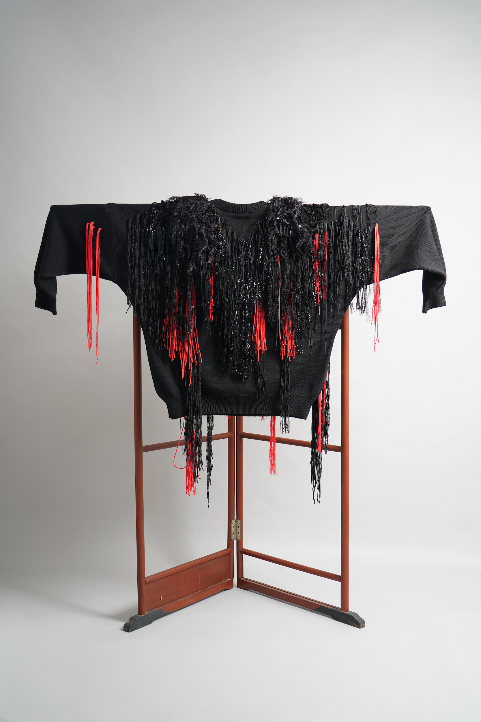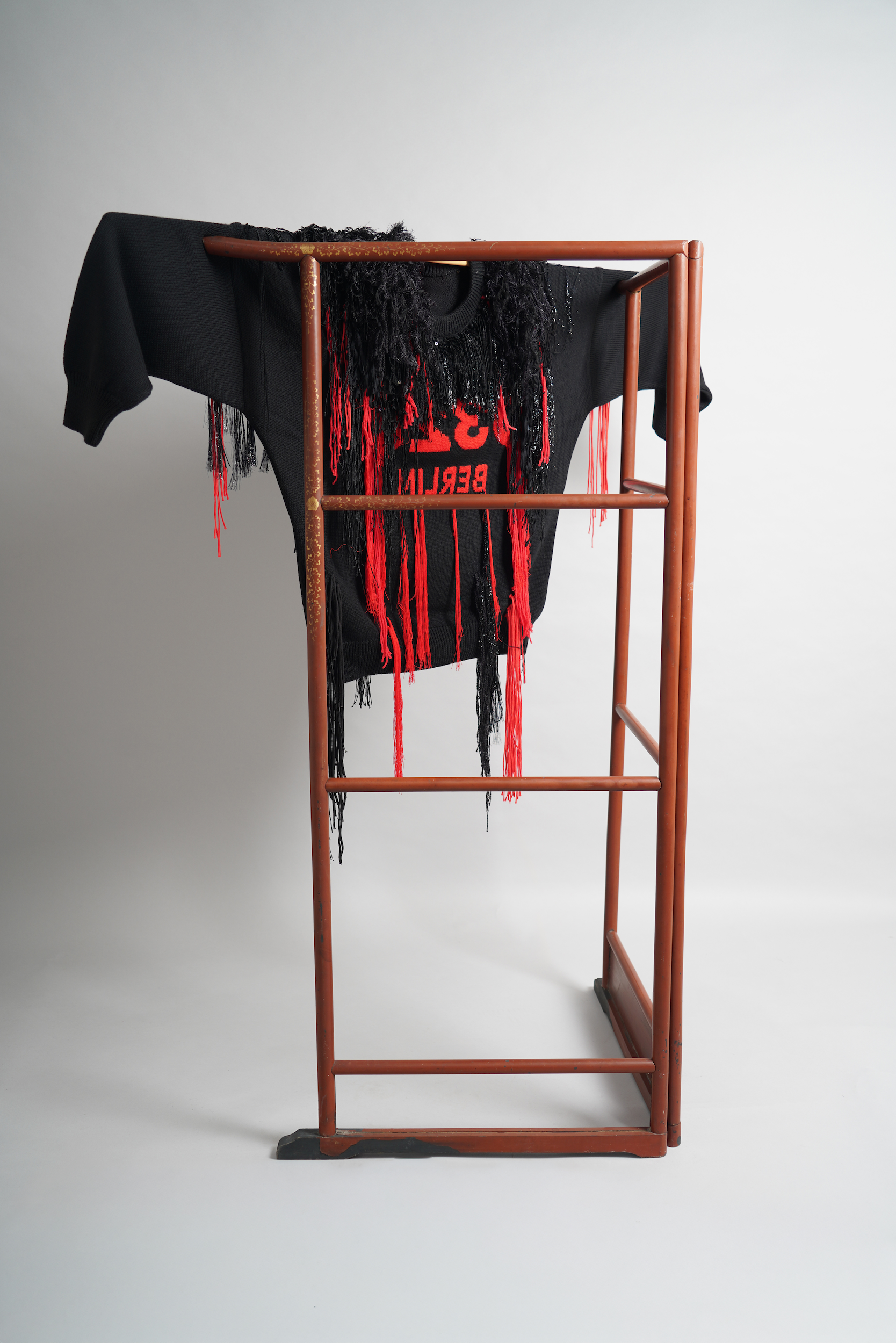 - Technique: Hand-applied fringe work on original 032c Selfie Sweater