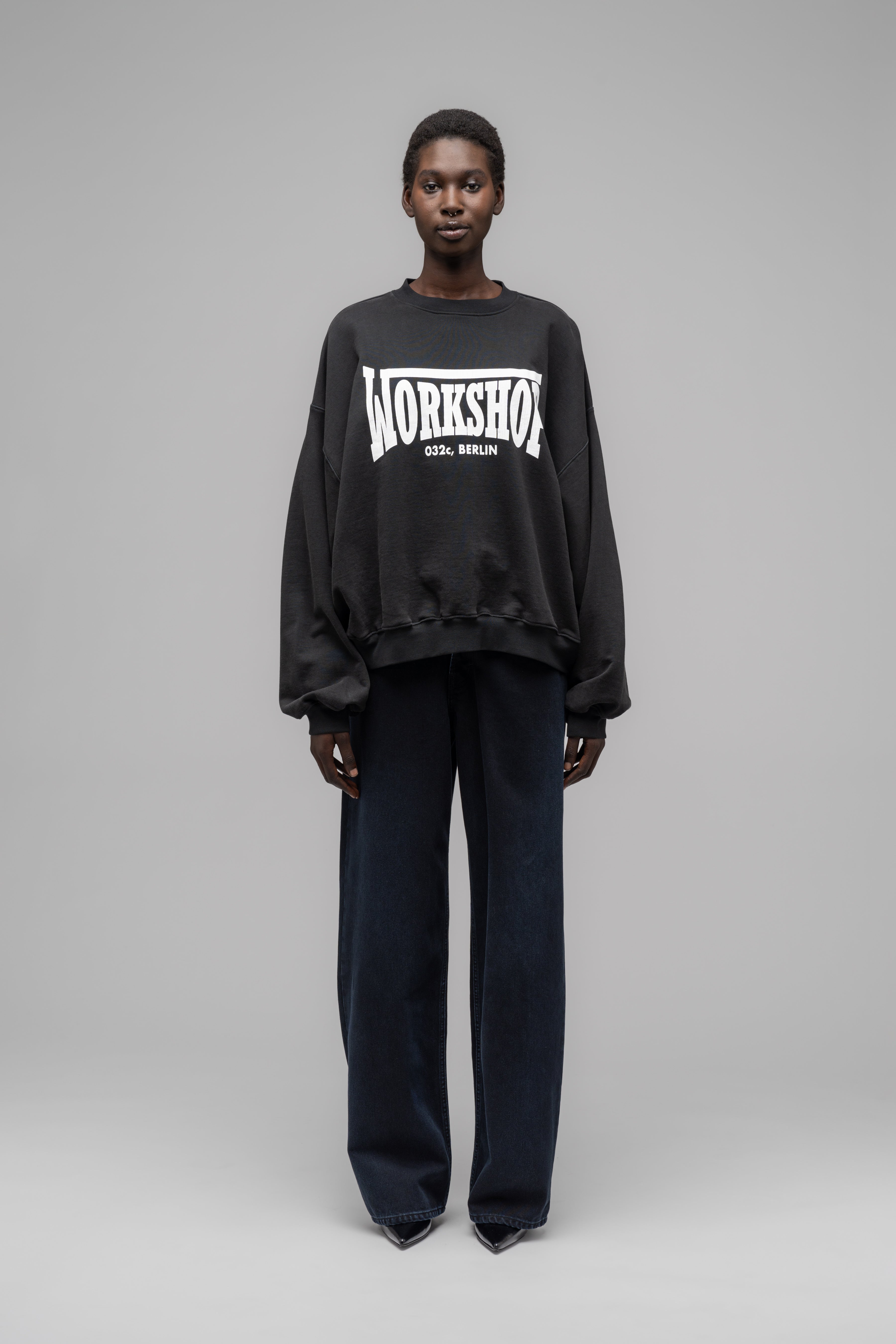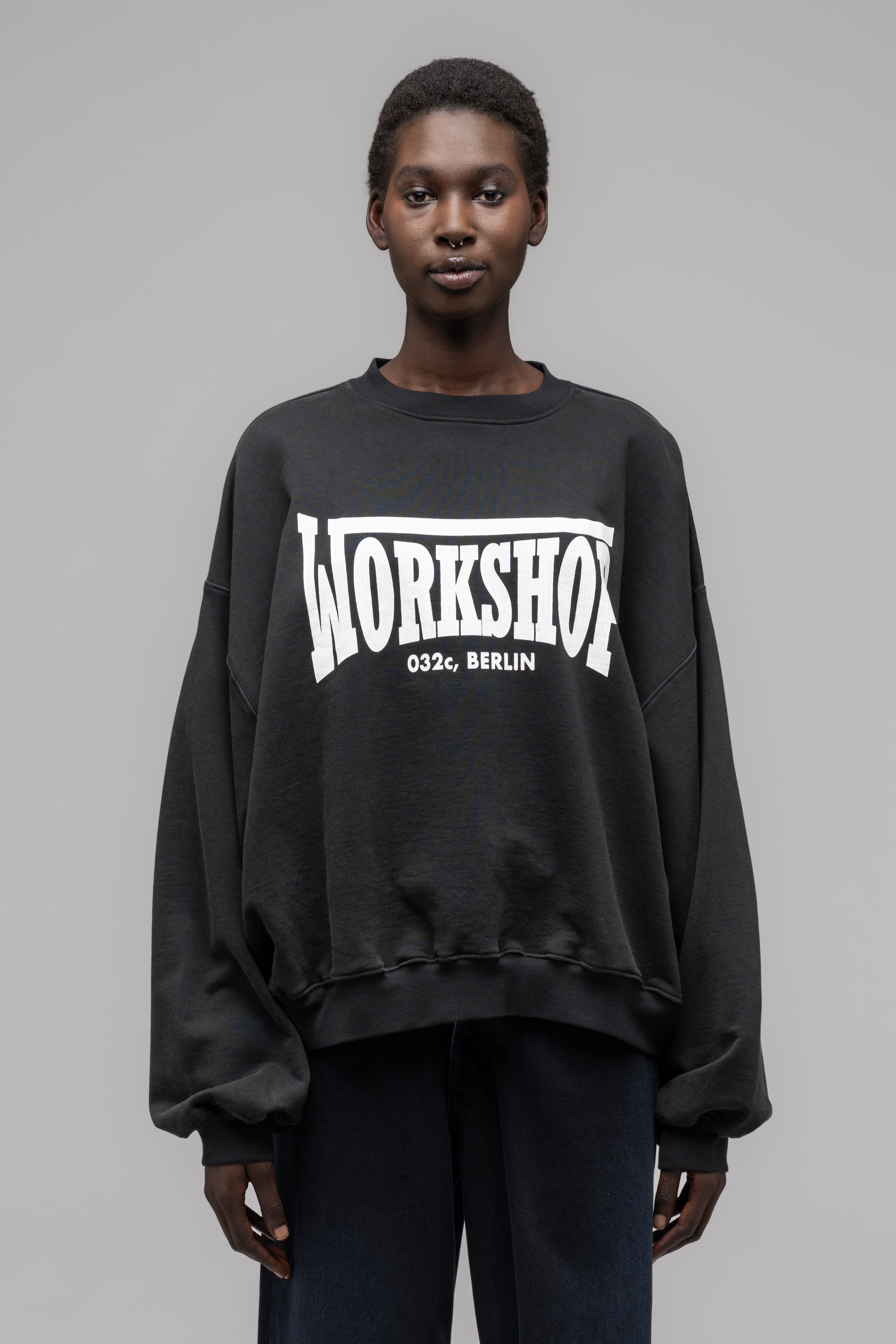 This oversized crewneck comes in a faded black for an overall vintage feel.
